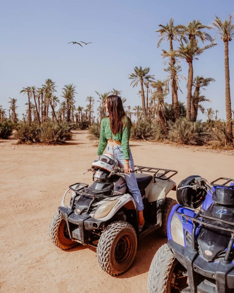 If you prefer a more tropical landscape, the Palmeraie is an oasis on the outskirts of Marrakech, known for its vast palm groves and scenic beauty. Quad biking in this area offers a completely different experience compared to the Agafay Desert, with winding trails, lush vegetation, and hidden Berber villages.